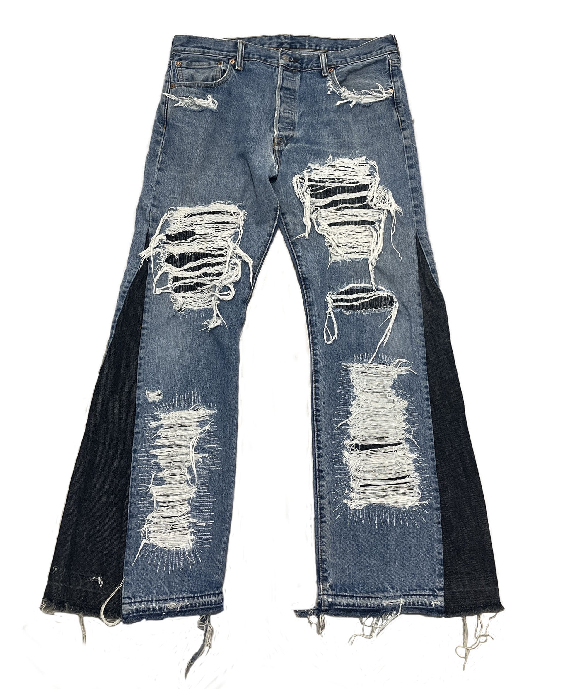 handmade Flared distressed denim